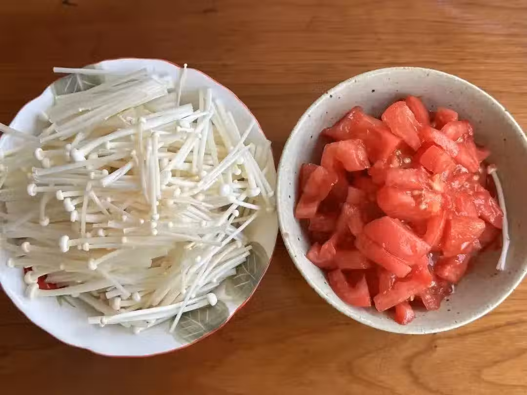 4、熱鍋涼油,下蒜末炒香,下西紅柿翻炒出湯汁。