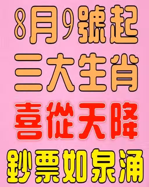 十二生肖與人們的運勢息息相關。隨著時間的推移,每個人的運勢都會發生變化。今天,我們要為大家揭曉的是,在8月9號這一天有哪些生肖將迎來天降黃金雨,鈔票如泉涌,喜從天降,橫財難擋,財運一炮走紅呢?讓我們一起來了解一下吧!有福之人留下一句「好運東來」此刻起財運開始滾滾而來,好運也隨之東來。