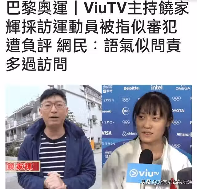 這次批評和近期舉行的奧運會有關,ViuTV派出的採訪團隊在巴黎頻繁出現低級失誤,審犯人式的提問風格震驚全港。其中,猶以記者饒家輝最為過分,在採訪被淘汰的中國香港柔道運動員王嘉莉時,他無視對方情緒低落,連珠炮式提出「你不滿意自己的地方哪裡」、「被對手拖到用寢技(註:柔道用語),最關鍵的原因是什麼,你在哪個環節做錯了」、「你覺得蒙古教練教你的東西,在這場比賽里用出了多少,你拿出了多少來用」等尖銳問題,導致香港網友強烈抨擊,指責他和ViuTV其遠不如TVB同行專業。
