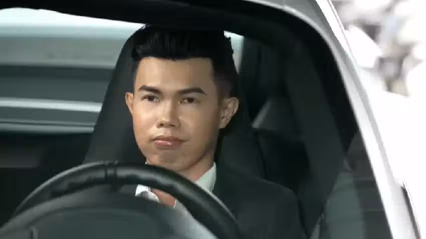 鄧佳華穿西裝開跑車與正妹約會。