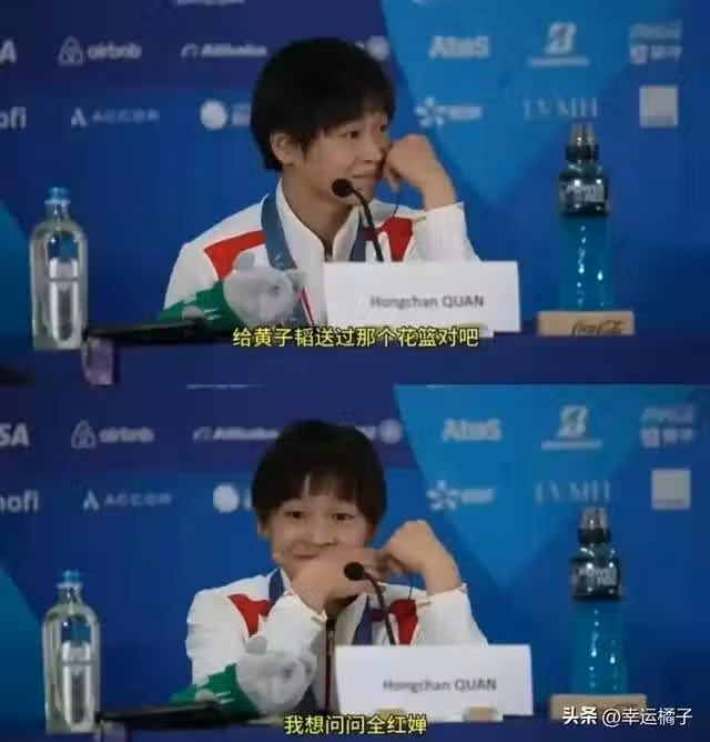 大家還記得全紅嬋和陳芋汐在10m跳台贏得冠軍接受採訪時,有記者問道:「之前全紅嬋給黃子韜送花籃是怎麼看待的呢?」