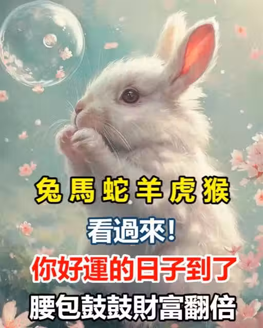 兔馬蛇羊虎猴看過來,你好運的日子到了,腰包鼓鼓財富翻倍