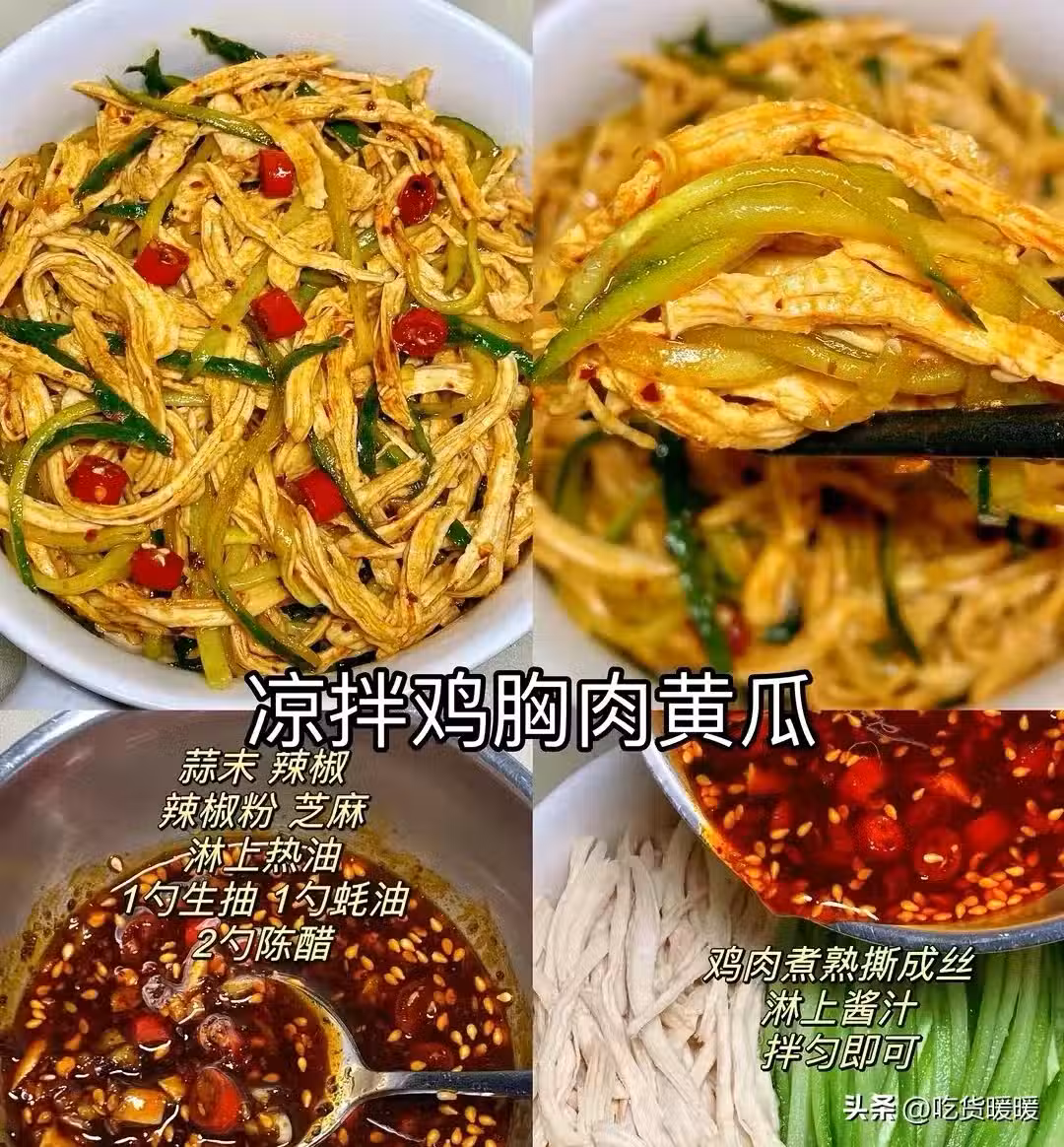 蒜末辣椒辣椒粉芝麻淋上熱油勺生抽 1勺蚝油2勺陳醋 雞肉煮熟撕成絲 淋上醬汁拌勻即可勻。