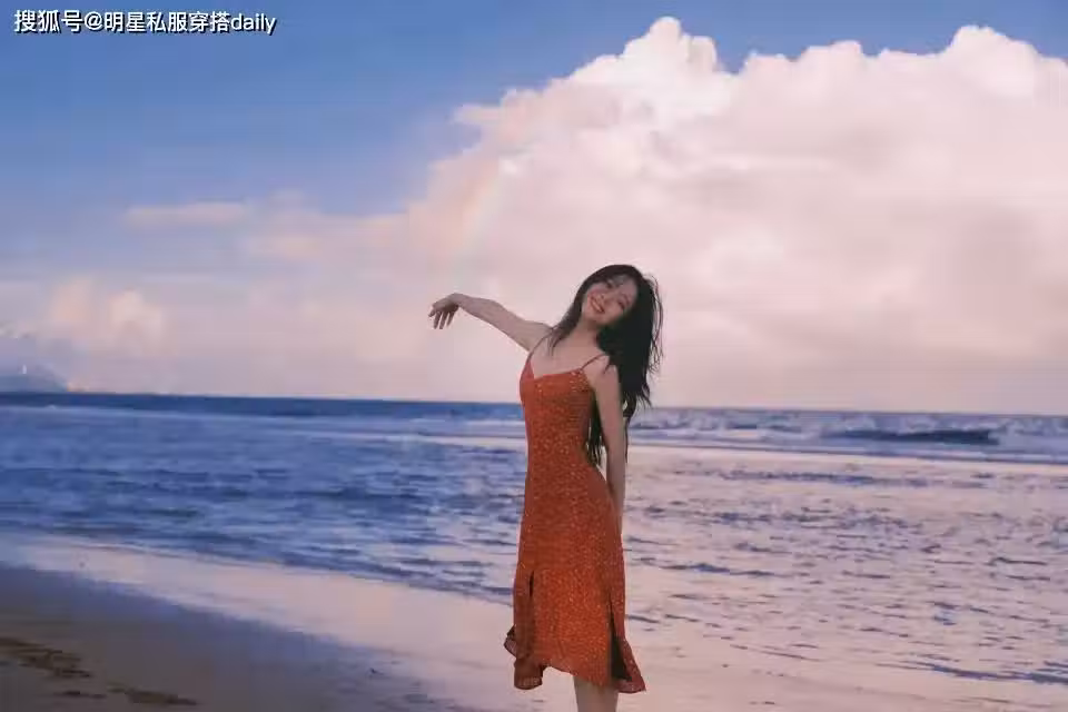 34歲譚松韻「好紅」!穿法式茶歇紅印花裙好元氣,,圓臉果然顯年輕