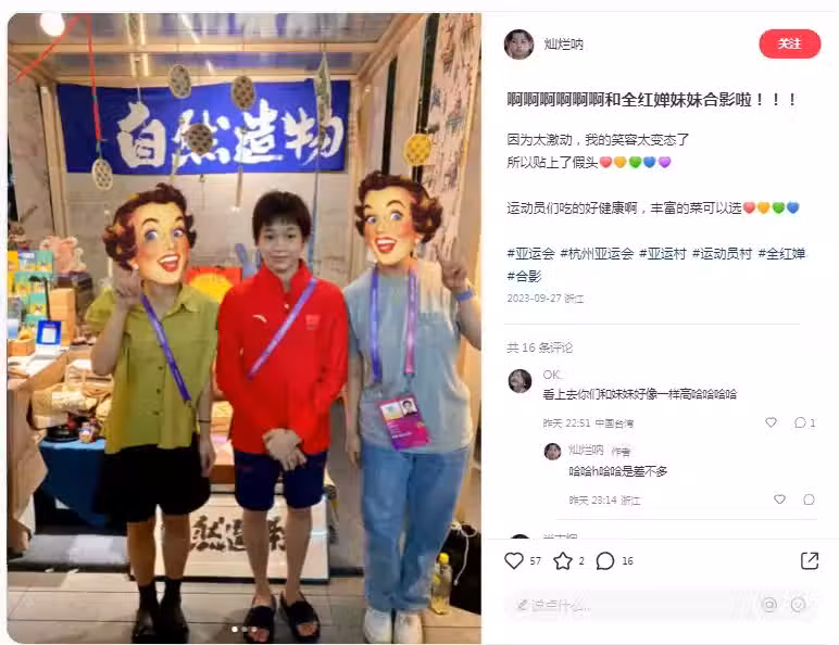 這位網友寫道:啊啊啊啊啊啊和全紅嬋妹妹合影啦!!!