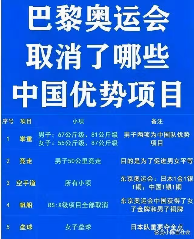 大家聽說了嗎?巴黎奧運會可是做了個大動作,一下子取消了六個大項目!這消息一出,可真是讓不少國家心裡"咯噔"一下。