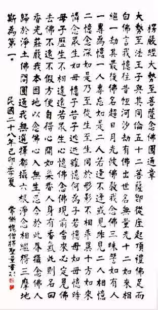 而《楞嚴經·大勢至菩薩念佛圓通章》實為念佛最妙開示,眾生果能都攝六根,凈念相繼,豈有不現前當來必定見佛,近證圓通,遠成佛道乎哉?」
