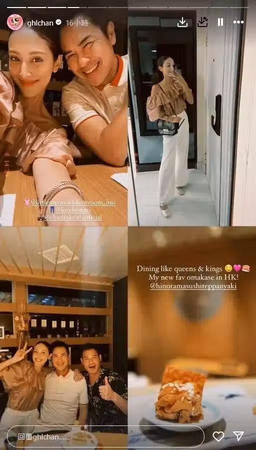 鄭嘉穎和陳凱琳並沒有帶同三子同行,反而約黃智賢一起吃日本料理慶祝,陳凱琳都有在個人帳號分享視頻,見到壽星鄭嘉穎坐在兩人中間,陳凱琳不時喂老公放閃,而一向嚴肅的鄭嘉穎也被融化,露出趣怪表情。