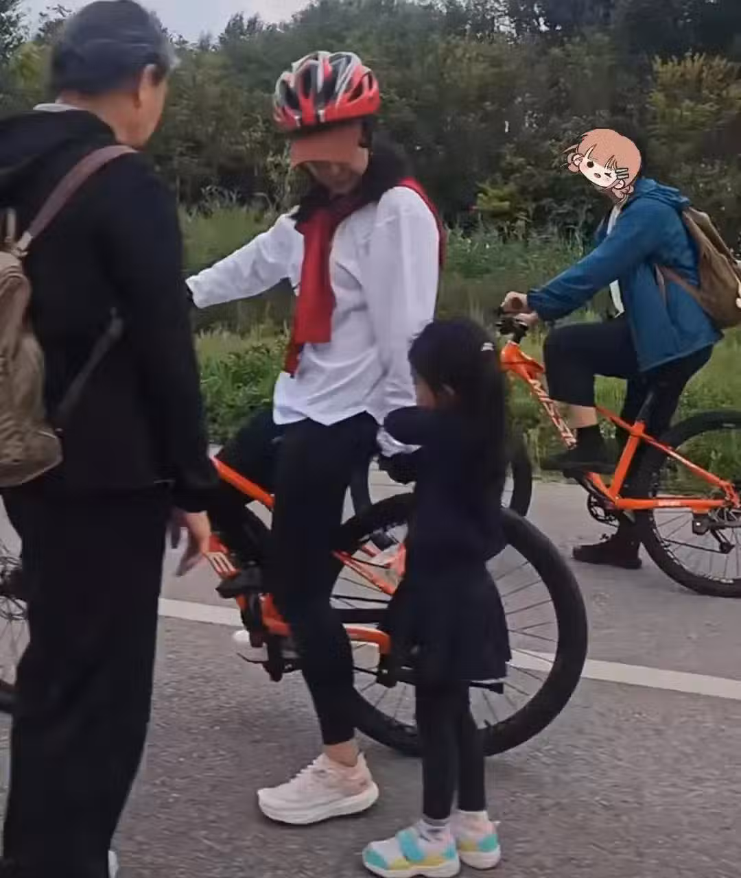 郭晶晶一家洱海遛娃,一身裝備公路騎行,霍啟剛速度太快撇下妻女