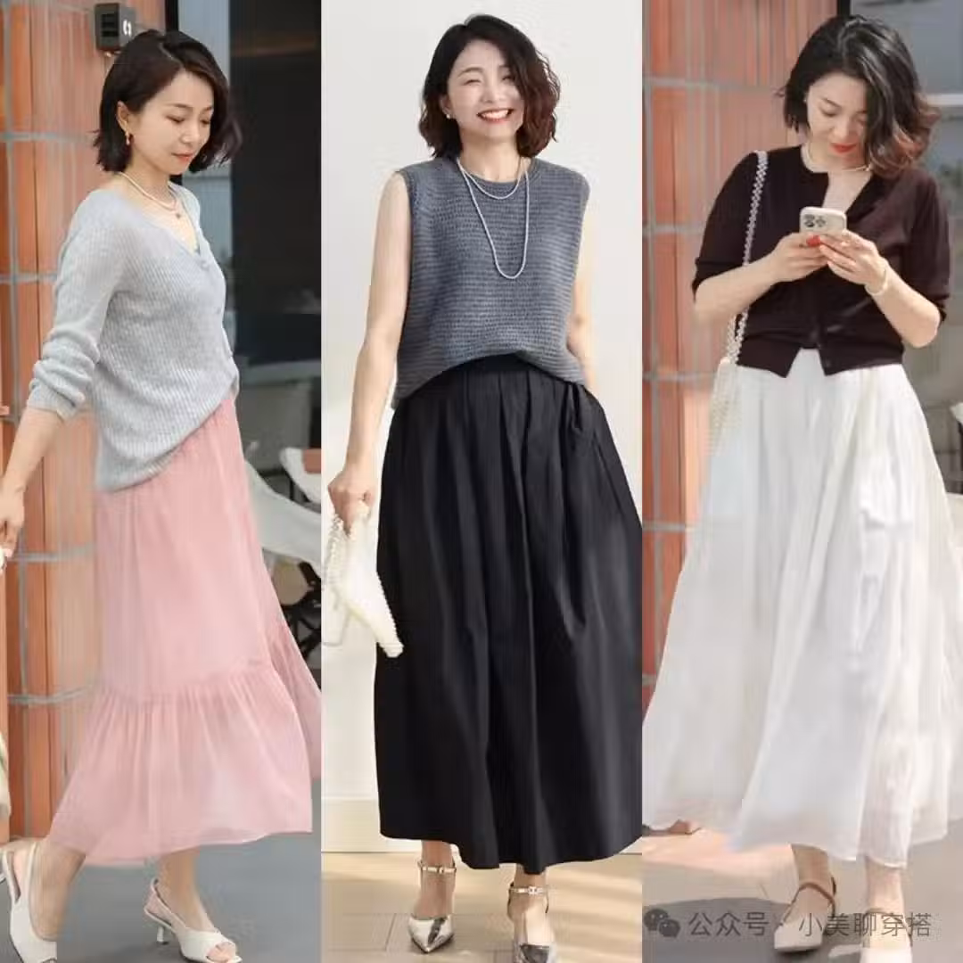 赫本裙,也稱為傘裙,它是一種收腰寬裙擺的設計,很適合梨形身材的女生,而且穿起來有一種輕盈飄逸的女人味,40+女生選擇長款的赫本裙再適合不過了。