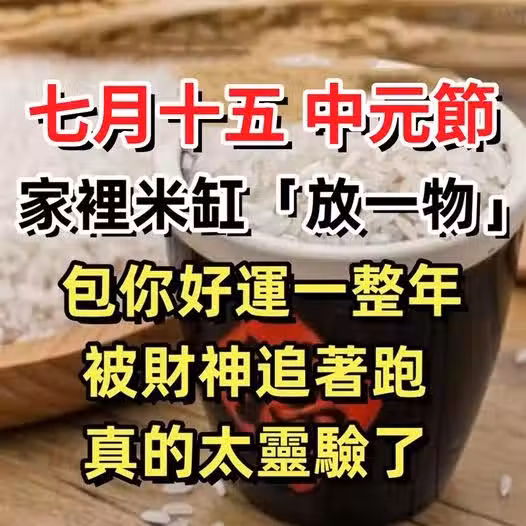 七月十五中元節,家裡米缸「放一物」包你好運一整年! 被財神追著跑,真的太靈驗了!