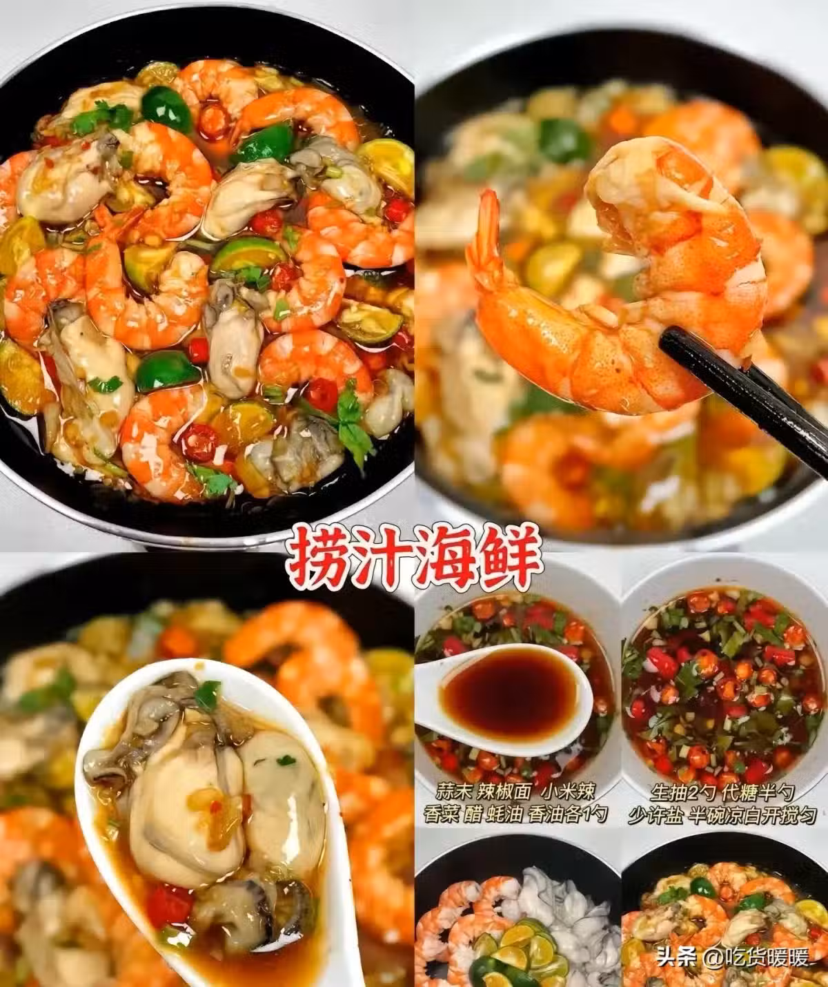 蒜末辣椒麵 小米辣 生抽2勺 代糖半勺香菜 醋 蚝油 香油各1勺少許鹽 半碗涼白開攪勻水開下 薑片料酒蝦