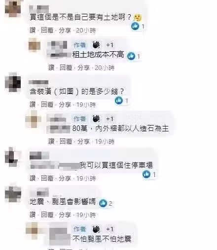 底下一部分網友驚呼居然能花小錢變身有殼族:「買了之後我就可以說我有房了」、「雙北置產不再是夢了」、「看起來很棒啊,前提要有地」、「認真有點心動!哈哈」。