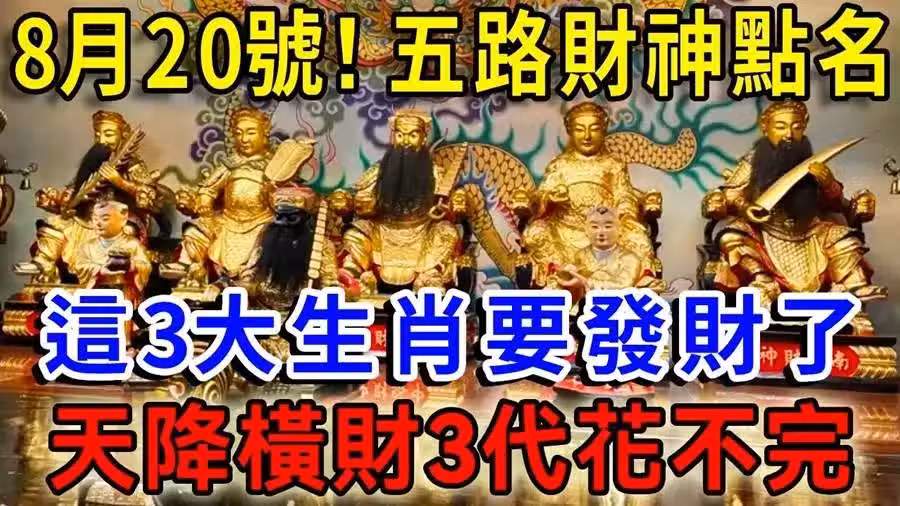 真的來了!8月20號!五路財神爺點名,這5大生肖要發財了,天降橫財3代花不完,往後要財運亨通一輩子了