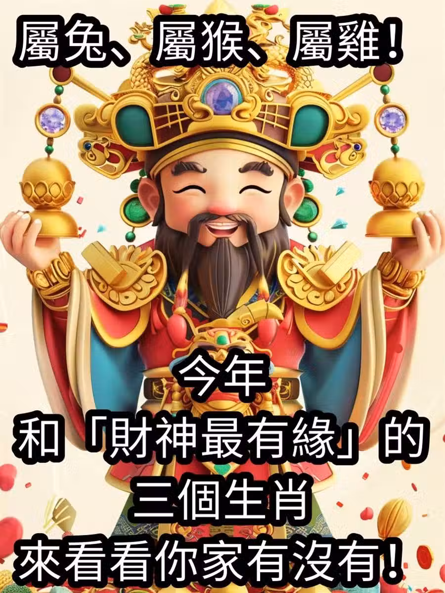 家裡有屬兔、屬猴、屬雞的朋友,今年財運滾滾來