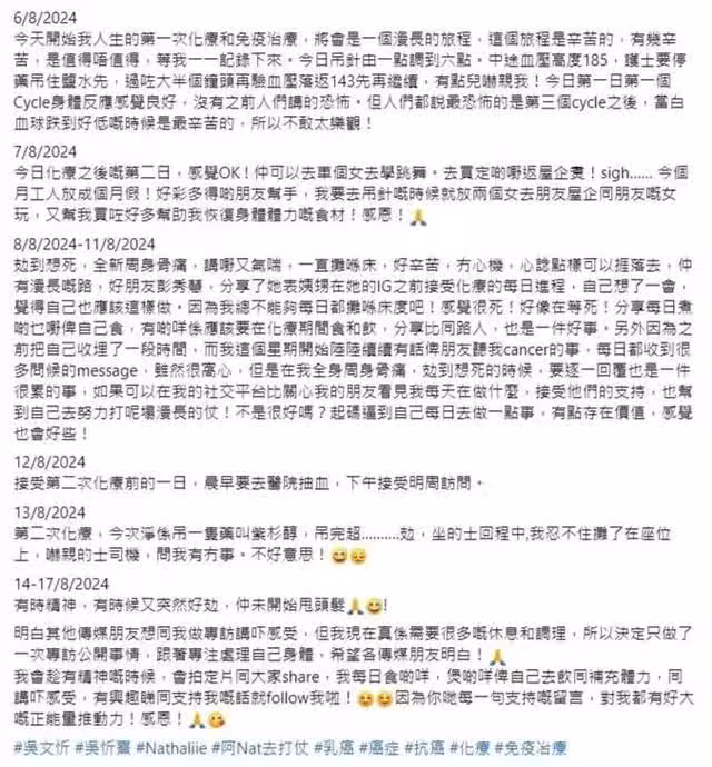 香港女星乳癌復發至三期!不再拒化療常常累到癱,聲沙狂咳將剃頭
