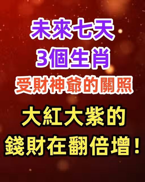 未來七天,3個生肖受財神爺的關照,大紅大紫的,錢財在翻倍增!