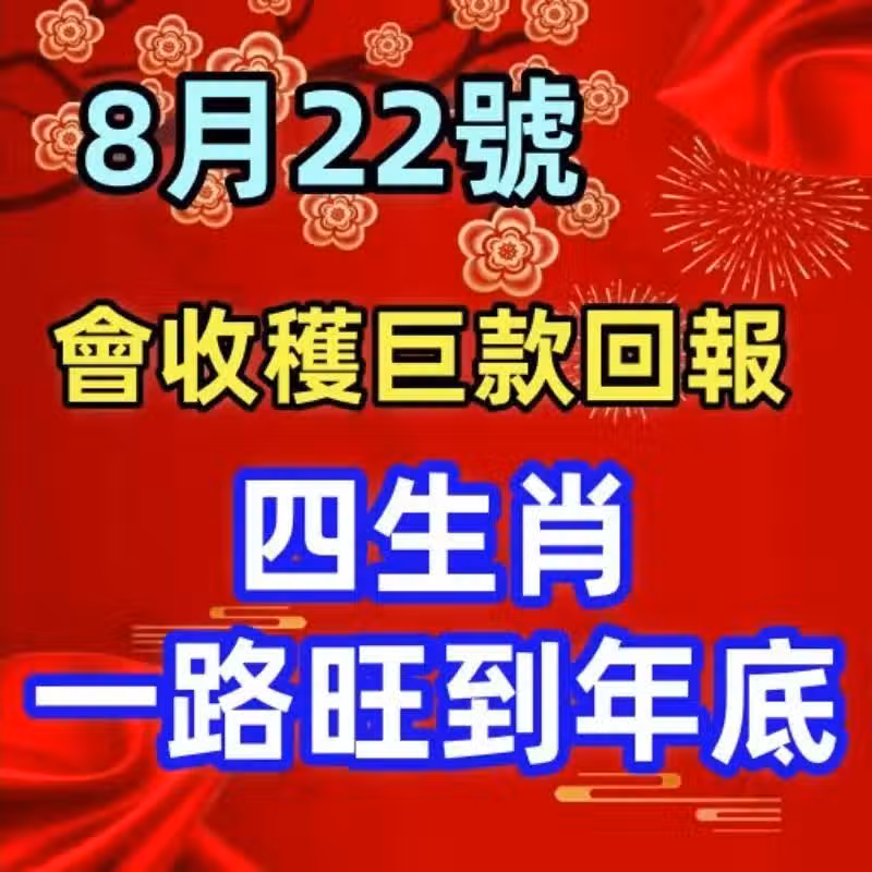 根據生肖運勢分析,以下四個生肖在2024年8月22號可能會迎來財運的上升,並有機會一路旺到年底: