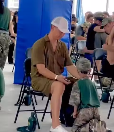 他說這很艱難,空調很少,還有蚊子,但他學到了很多東西,這對他來說是一段很有意義的時光。他表示等Ryan長大了,他會陪弟弟一起去參加。我們為他感到驕傲!畫面中李乘德同樣十分激動,他緊緊抱著兒子親吻。
