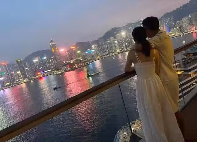 郭可盈與老公親密依偎看海,畫面極致浪漫,14歲女兒掌鏡被喂狗糧!