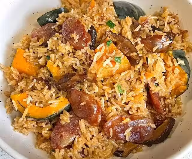 臘腸的咸香、南瓜的粉糯再加上香香滴香菇,我的媽呀,直接香暈了。