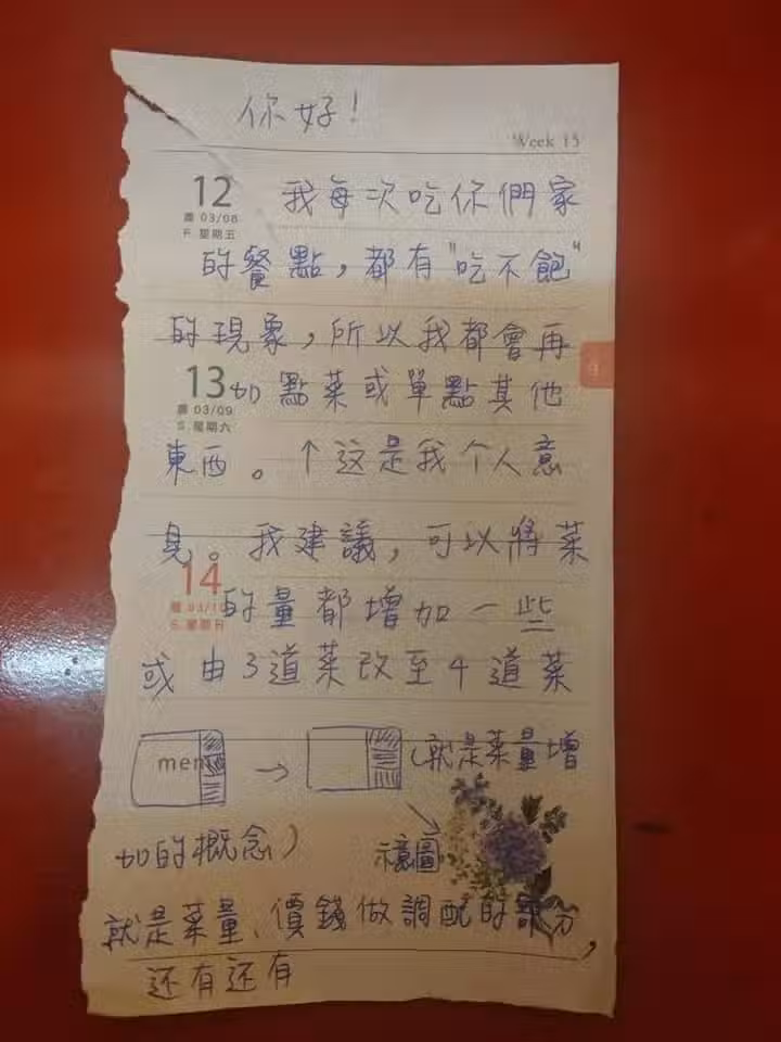 60元便當分量太少?老闆特地「給2倍飯菜」也沒用 學生把飯倒掉後「遞上一張小紙條」網友美送了