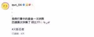 對此,峮峮今日稍早在IG限時動態發文,打破引退謠傳:「那個…我只是少打了『今年』,為什麼要說成是我人生最後一場洲際例行呢?這麼希望我退出嗎?」並無奈附上哭臉表情符號。許多粉絲看到峮峮澄清後才鬆了一口氣,也表示很期待明年能夠在洲際球場見到她。
