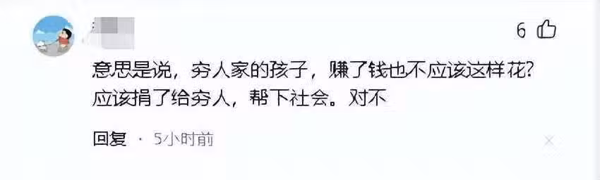 當有人說出全紅嬋如果掙錢了,刻意把錢用在幫助親戚、鄰居和更多的陌生人,而不是自己享受,站在道德的至高點說讓人家保持艱苦奮鬥,勤儉節約的品德時。