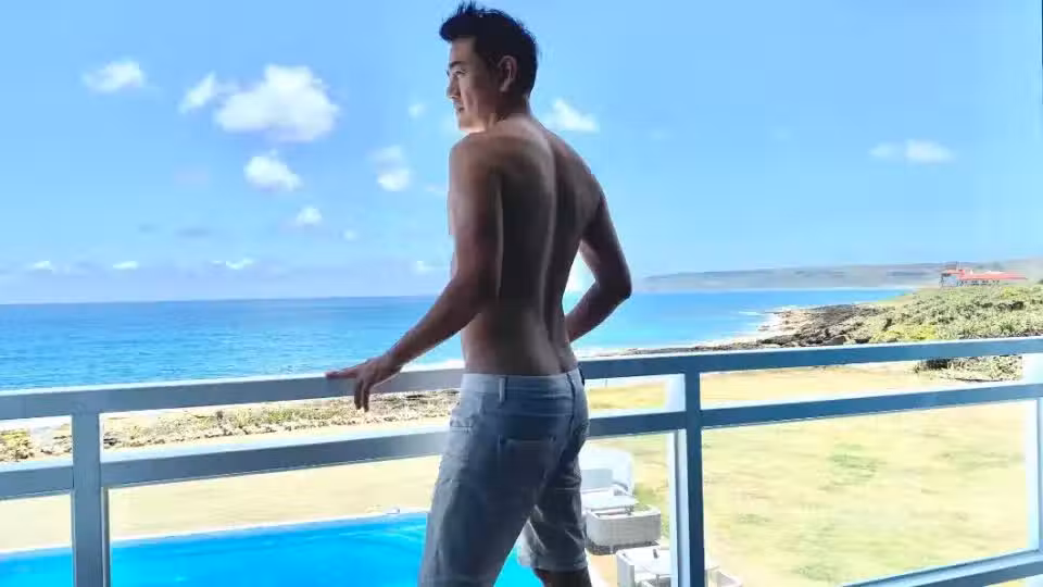 在感情上經歷諸多轉折的陳俊生,後來看好記憶學課程投入補教業,還在恆春開了一棟60多坪的民宿。昨(27)日他在臉書曬出一張自己望著蔚藍大海的背影照,寫下「頂級民宿」4字,然而眾人一看全都歪樓,因為已53歲的他上半身全裸,下身短褲微微滑落,讓股溝若隱若現,狀態好得驚人,不少網友一看都讚嘆「太過分了,身材還是那麼好」、「厲害了」、「身材真好」、「這線條也...」、「偶像」。