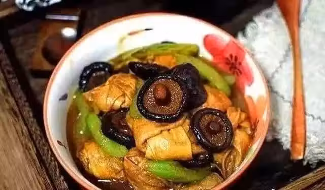 食材:香菇,油豆皮,西芹,生薑,植物油 ,食用鹽,老抽,白砂糖