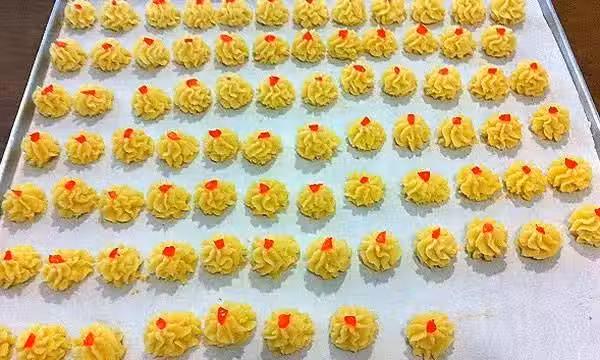 無鹽奶油,加入過篩後的糖粉,鹽打至松發變白; 將麵粉、粟米粉過篩後,加入拌勻; 然後加入奶粉拌勻即為酥鬆性麵糊; 在烤盤搽油,將麵糊裝入擠花袋中; 整齊的擠在烤盤上或小紙杯里; 並以160℃烤約15-20分鐘即可(不要烤太久,失去奶油味道)。