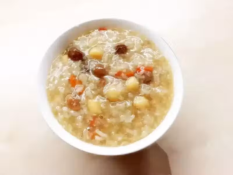 3. 調至煮粥功能兩小時,水要多放一些,離煮好還剩20分鐘的時候放入枸杞,煮好後調入適量紅糖即可