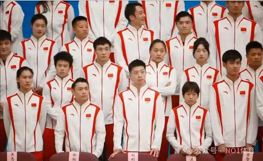 潘展樂、馬龍、孫穎莎、李雯雯等奧運冠軍都擺好了架勢拍照,而小紅卻雙手無處安放的感覺,十分可愛!