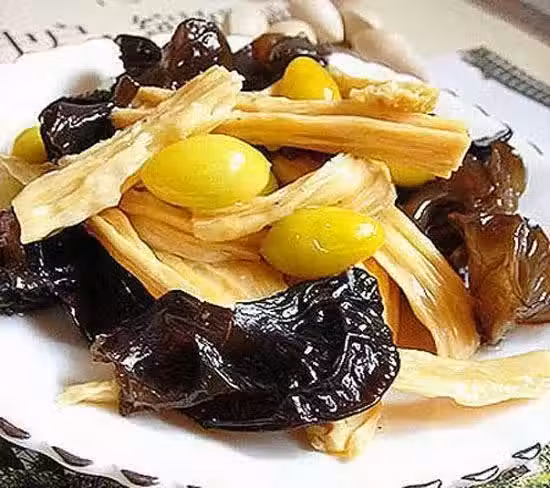 木耳、腐竹、白果、鹽、食用油、蘑菇精 適量