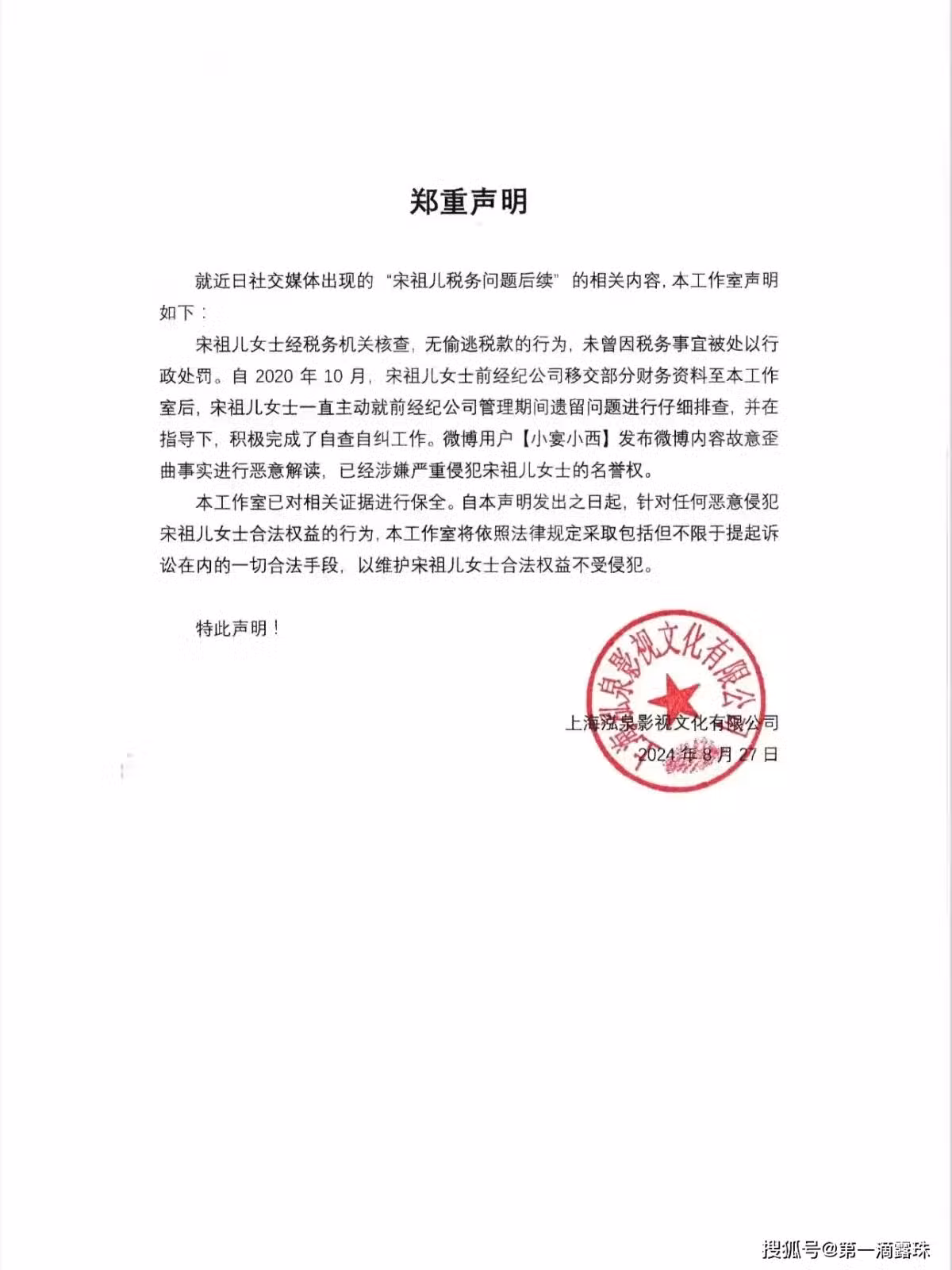 此前網上討論得沸沸揚揚的宋祖兒偷稅漏稅和高考作弊一事,終於有眉目了。近日,宋祖兒工作室發布聲明澄清偷稅漏稅和高考作弊。