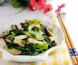 2、鍋中再放油燒熱,依次放入香菇、西蘭花、少許胡蘿蔔、鹽、少許醬油,胡椒粉,炒勻出鍋即成。