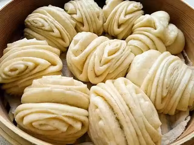 原料:麵粉500克,酵母5克,泡打粉3克(放入麵粉中),豆沙餡1袋