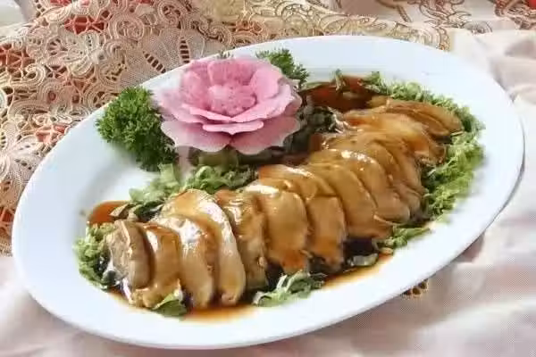 2、生菜切絲墊入盤底,把煮熟的百靈菇切片擺放到生菜上;西蘭花也擺到盤上。