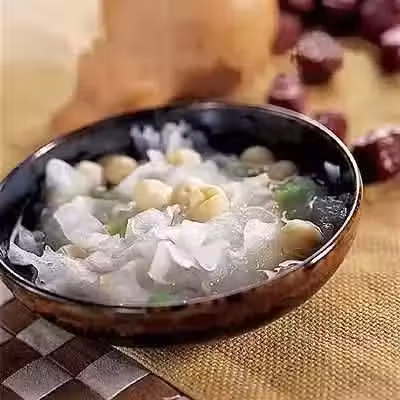 做法:將干銀耳用水泡開、去根蒂切小,竹筍洗凈,鍋內加水煮沸,放入銀耳竹筍,溫和煮5分鐘,加鹽調味即可。