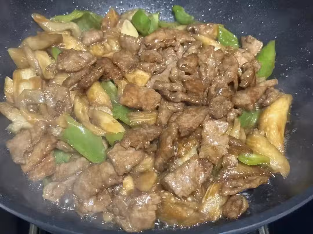8、非常好吃又下飯的茄子就完成了。茄子軟糯入味兒,牛肉嫩滑不柴,加入青椒微微提味,這樣炒出來的茄子真的比油炸更好吃更健康!關鍵口感清爽不膩,一頓一盤茄子吃不夠!
