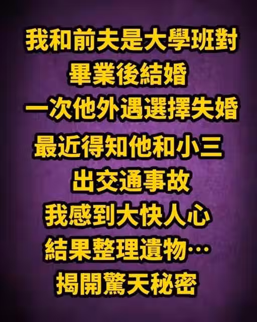 我和前夫是大學班對,畢業後結婚,一次他外遇選擇失婚,最近得知他和小三出交通事故,我感到大快人心,結果整理遺物…揭開驚天秘密!