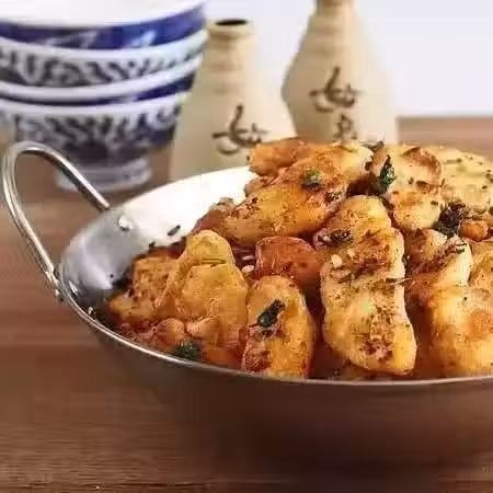土豆(馬鈴薯)300g/干澱粉60g/辣椒粉2小勺/孜然粉或者孜然粒2小勺/花椒粉1小勺/薑末/鹽/麵粉20g