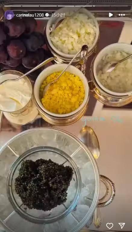 8億闊太劉嘉玲夜宵吃一大碗魚子醬,滿桌的壽司和水果成擺設,有錢人的快樂,普通人難以想像