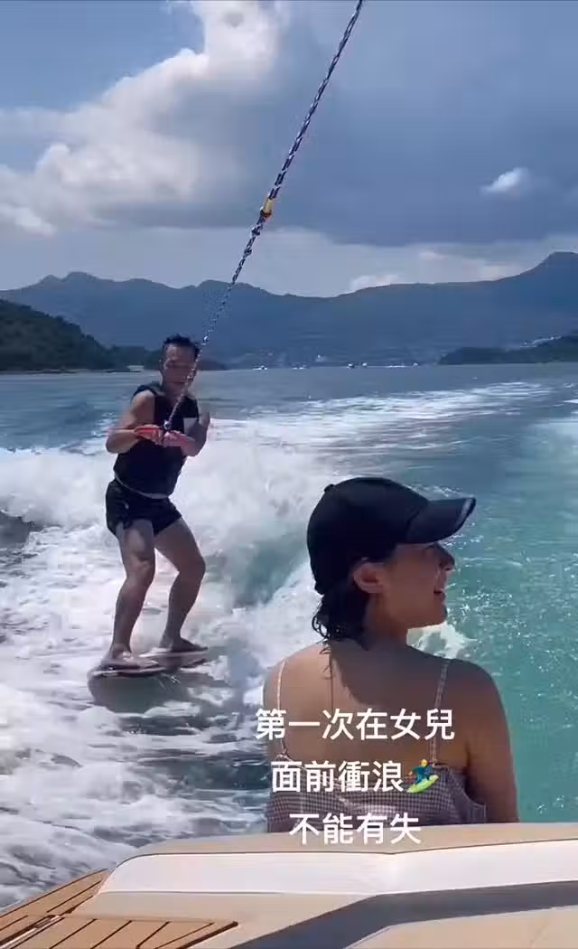 61歲張兆輝衝浪一身腱子肉壯如牛!秀麒麟臂與樹根腿,愛女忙欣賞