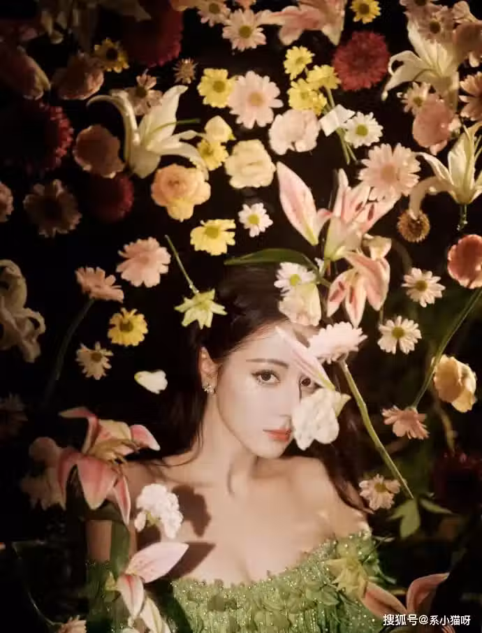 迪麗熱巴新造型曝光:綠眼影搭配羽毛流蘇,,宛若自然仙境之美