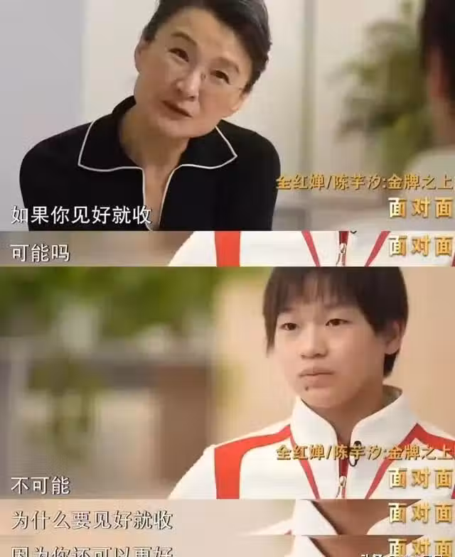 當董倩問全紅嬋:"如果讓你見好就收,可能嗎?"全紅嬋的回答簡單直接: