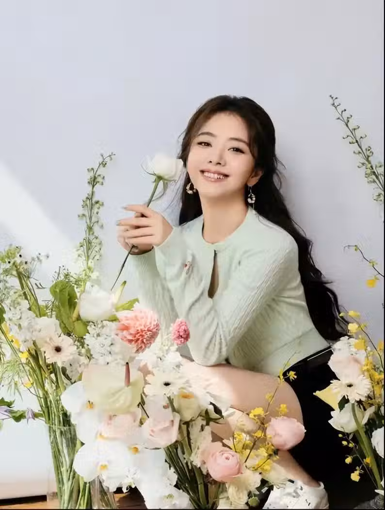 譚松韻化身插花少女,纖細小蠻腰身材好,淑女范兒!
