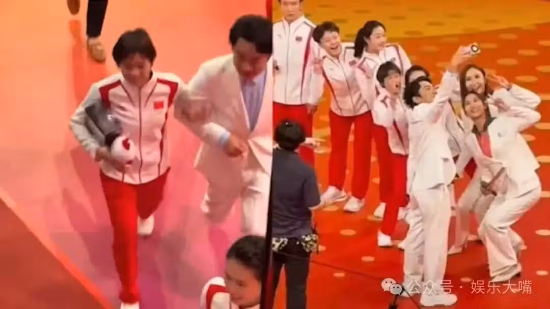 待演出臨近尾聲,還有一出有趣的插曲。原本照常應該是大合影環節,但就在工作人員剛一招呼時,全紅嬋和汪明荃竟像挑釁般邁著大步走到了正中央的C位!
