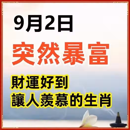 9月2日突然暴富,財運好到讓人羨慕的生肖!