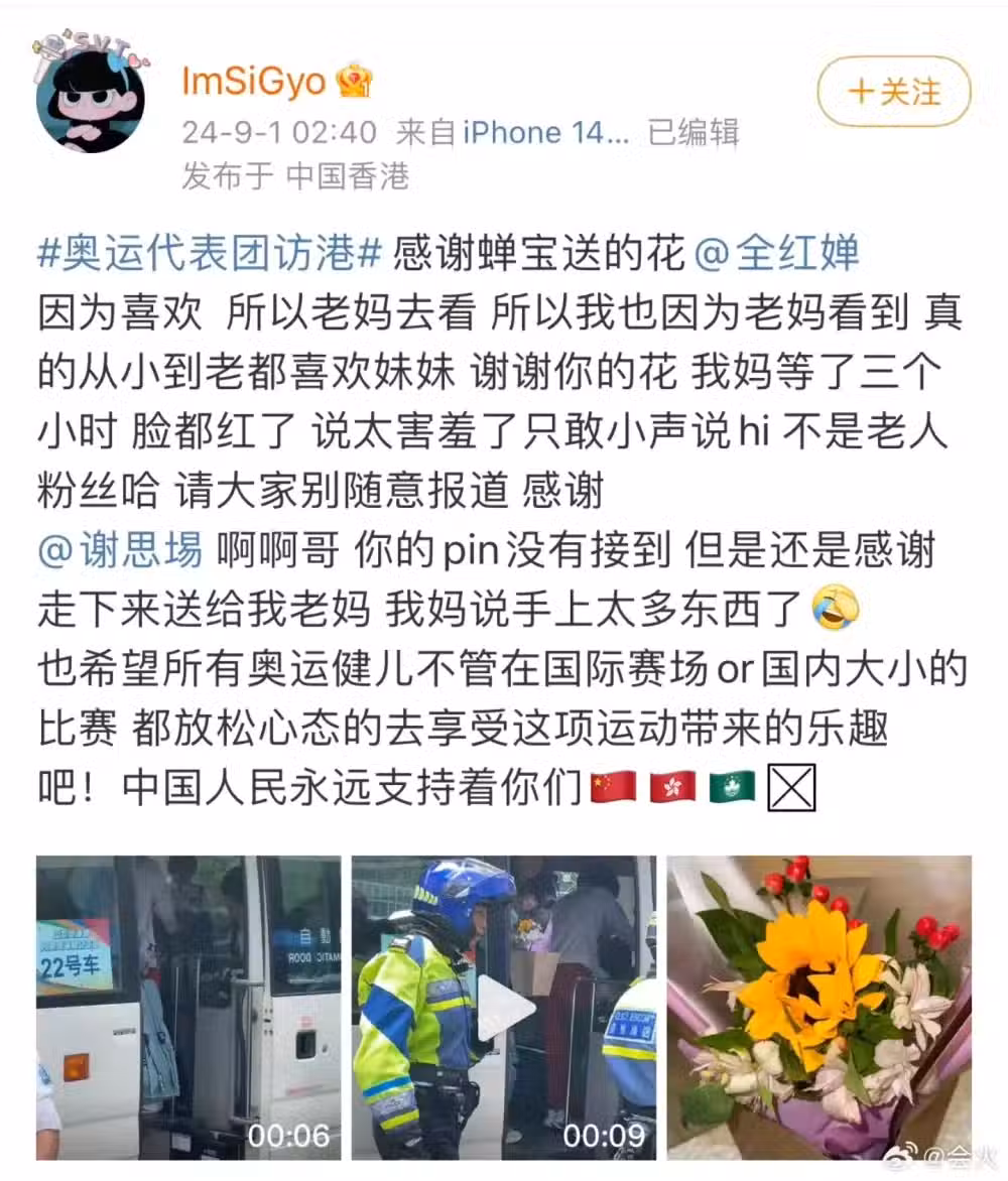 有粉絲曬出蟬寶送的花,並寫道:「因為喜歡所以老媽去看,所以我也因為老媽看到真的從小到老都喜歡妹妹。謝謝你的花,我媽等了三個小時,臉都紅,說太害羞了,只敢小聲說hi。」